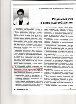 POLIN Опубликовано 6 Февраля 2010 Автор Жалоба Опубликовано 6 Февраля 2010 Журнал «Главбух» № 1(68) январь 2010 год. Статья «Раздельный учет в целях налогообложения», консультирует финансовый аналитик О. Пономарева. Рассмотрены условия применения статьи 58 НК РК. Автор пишет: В обязательном порядке раздельный учет должен быть организован на многопрофильных предприятиях, которые осуществляют более одного вида деятельности. Это не так. Если предприятие ведет многопрофильную деятельность, по которой не предусмотрены различные условия налогообложения, оно не обязано вести раздельный налоговый учет. НК РК Статья 58. Правила ведения раздельного налогового учета 1. Налогоплательщик, осуществляющий виды деятельности, для которых настоящим Кодексом предусмотрены различные условия налогообложения, обязан вести раздельно учет объектов налогообложения и (или) объектов, связанных с налогообложением, в целях исчисления налоговых обязательств по таким видам деятельности. Если предприятие занимается различными видами деятельности, в отношении которых налоговый кодекс не предусматривает особые условия учета либо различные ставки налогообложения- раздельный налоговый учет не применяется.