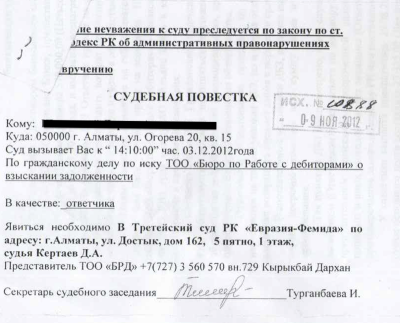Mishanya Опубликовано 21 Ноября 2012 Автор Жалоба Опубликовано 21 Ноября 2012 (изменено) Может, выложить тут скан документа какого-нибудь, а Мишаня? Желаю выложить повестку, которая жирно начинается словами об администартивной ответственности за проявление неуважения к суду. Ну а дальше - все понты, как говорится. Чуть позже обязательно скину сюда! Третейского судью Кертаева в свое время из 2-го Бостандыкского суда уволили по профнепригодности. Именно он в вышеназванной повестке и указан как судья! Именно Кертаев! Изменено 21 Ноября 2012 пользователем Mishanya