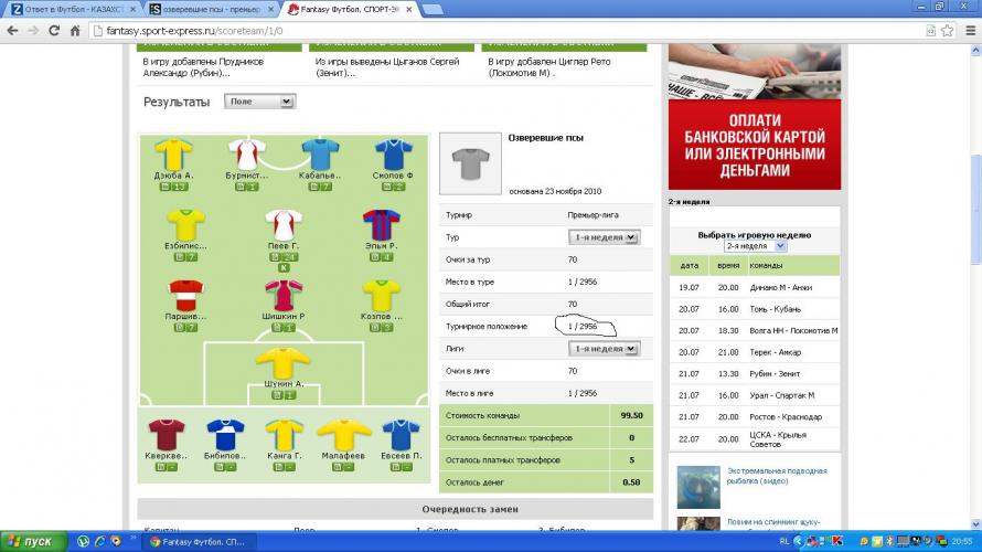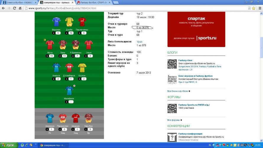 Вовун Опубликовано 19 Июля 2013 Жалоба Опубликовано 19 Июля 2013 Мои результаты в фэнтези по итогам первого тура российской премьер-лиги: Охренеть не встать Честное пионерское - практически не следил в межсезонье за новостями, и вообще за последние пару лет не смотрел полностью ни одной игры в ПЛ, как то почти полностью на хоккей переключившись. Но привык к этим фэнтэзи, буквально за сутки до старта ПЛ узнал об этом событии, пробежал глазами пару аналитических статей и выставил команды)))