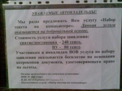 PRESIDENT Опубликовано 4 Марта 2008 Жалоба Опубликовано 4 Марта 2008 В том то и вся фишка - талоны, вроде как, бесплатные должны выдавать, но их нет. А есть за 1200 в Евросети - но с дополнительными функциями, которые наф..... никому не нужны. Это как в старом приколе "вчера большие, но по пять, а сегодня маленькие, но по три". И не выдают в Алматы в экзаменационном центре бесплатных талонов - их нет!!!!! Более того, мне не понятно о какой цифровой подписи идет речь, и зачем мне на компе набирать сообщение и отправлять его гос.чиновникам, заверяя этой подписью? Это талон к водительскому удостоверению, или карточка с цифровой подписью и платежная карта одновременно? Сдается мне, что основная функция талона - учет адмправонарушений - это лишь 1/1000 от того объема дополнительных функций, которые Процессинговый цент внедрит в эти талоны и ЗАСТАВИТ нас ими пользоваться и оплачивать за это деньги. Первая ласточка - электронные сообщения, заверенные электронной же подписью "значительно дешевле" (см. выступление вышеозначенного лица). Таким образом - либо мы дождемся решения суда в пользу автолюбителей и вздохнем спокойно, либо во второй половине июня все будем жить в ДВД, в очереди за этими самыми талонами!!!! А вот что говорит 2сумов Какова процедура выдачи талонов водителям? - Талоны к водительскому удостоверению будут выдаваться бесплатно во всех подразделениях дорожной полиции, независимо от того места, где ранее было получено само водительское удостоверение (регистрационно-экзаменационные подразделения, подразделения административной практики), по заявлению граждан, имеющих водительское удостоверение. Я что получается могу получить талон в любом отделений ДП :smile: